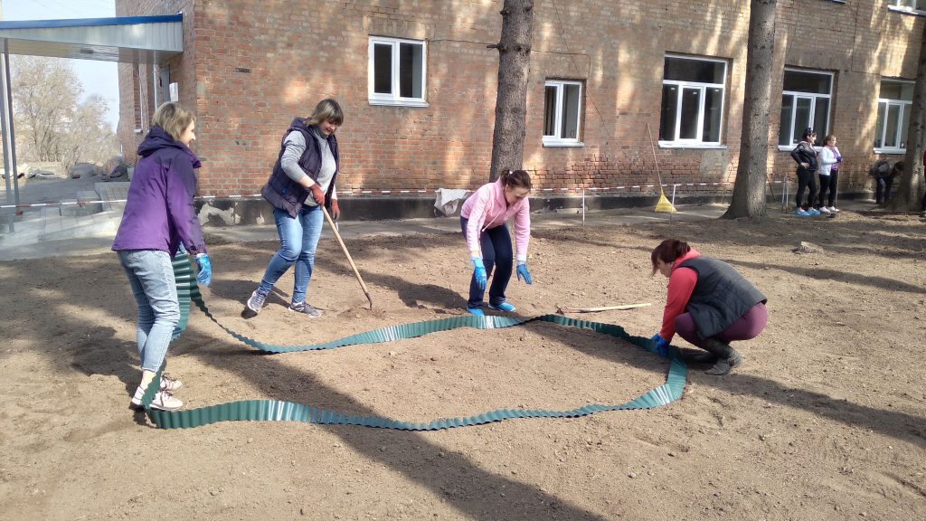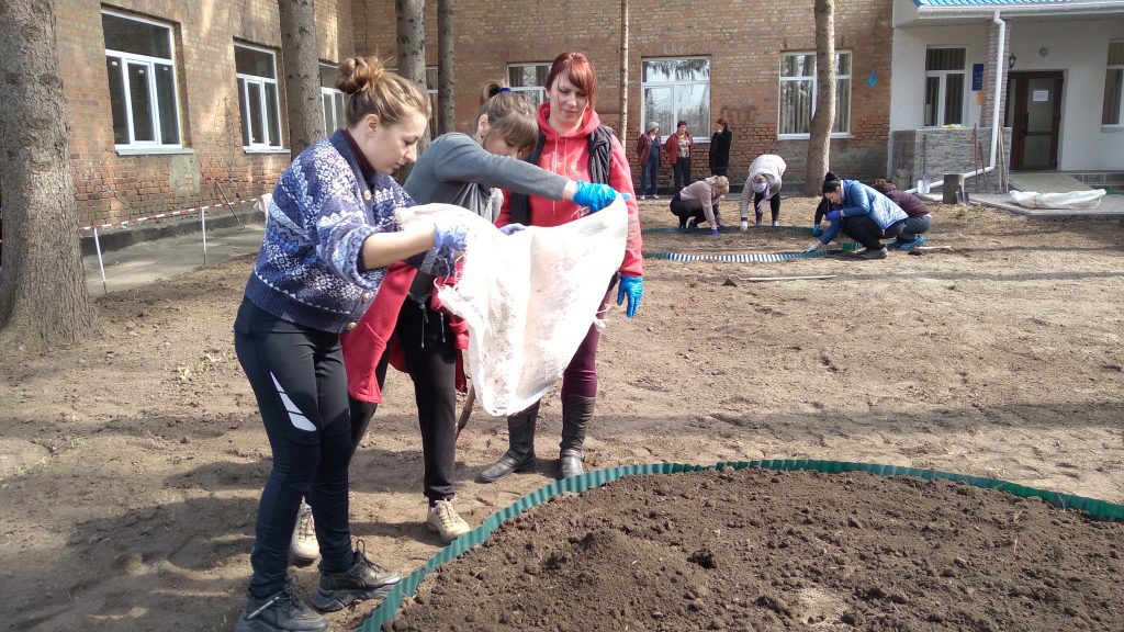 Роботи було зроблено дуже багато – зібрали сміття, обрізали кущі та дерева, розчистили територію від гілок, підсіяли газон, облаштували клумби з висадженням квітів, та підготували місце для висадки алеї троянд, відремонтували сходи, доріжки, оздобили бордюри, провели санітарну чистку насаджень.