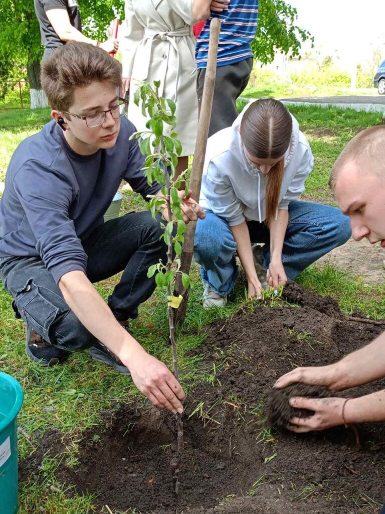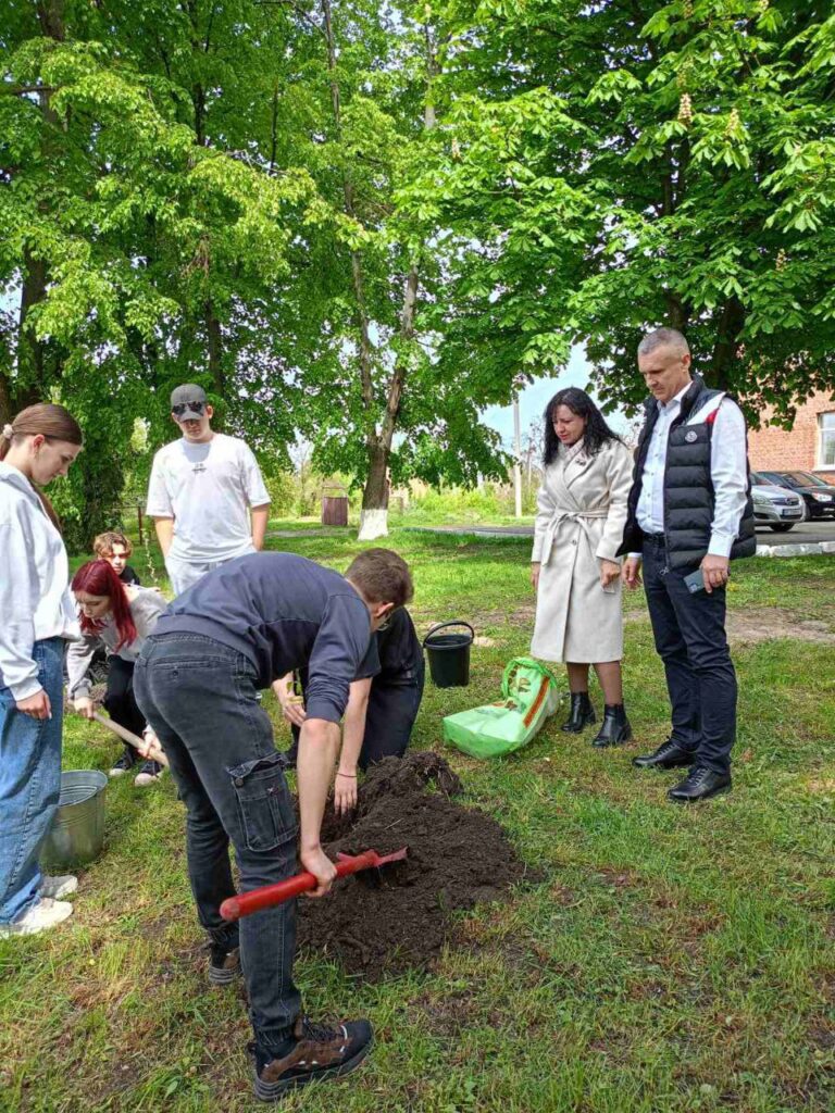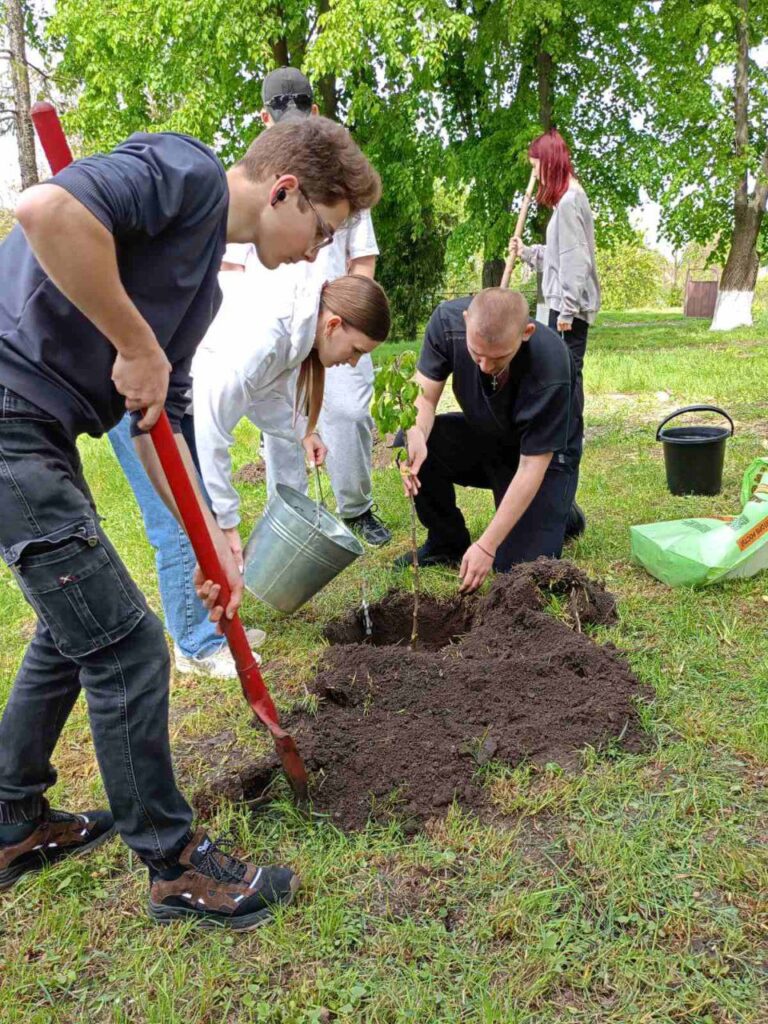 Учні 11 класу Городищенського економічного ліцею Городищенскої міської ради Черкаської області долучилися до загальнонаціональної акції «Випускники 2024 року для майбутніх поколінь» та взяли участь у чудовій еко-ініціативі – озелененні території біля Городищенського центру первинної медико-санітарної допомоги.